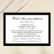 This lovely hotel accommodation card features a black border (or any colour you select) with black lettering. The script font is elegant to make this design lovely yet simply beautiful. You can customise all of your accommodation details. Copyright bargainsbyhenis
