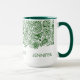Elegant hunter green tones vintage floral paisley lace design over white background.