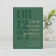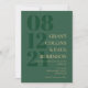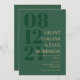 Elegant typography wedding invitation in hunter green with your wedding date in large numbers down the side of the invitation. Add names and wedding wording in a golden tan colour.