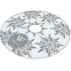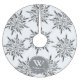 Gorgeous icy crystal snowflakes pattern over white Christmas skirt with a grey badge featuring your personalised family monogram, full family name, and est. date in white text.