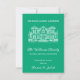 Announce your move in sophisticated style with this elegant new address announcement card. The design features a large, detailed white line illustration of a stately mansion or beautiful home against a bold teal/emerald green background. This card is perfect for families like The Williams Family and the couple Romeo & Juliet who want a classic, upscale change of address notice. The card clearly states "WE HAVE A NEW ADDRESS" and includes an invitation to visit. Easily customize your family names and new street address.