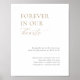 Create a cherished and heartfelt tribute to your loved ones with our exquisite "Forever in Our Hearts" Wedding Table Sign. This elegant piece features stunning calligraphy font, adding a touch of grace and remembrance to your special day. Honor those who are no longer with us in a beautiful and meaningful way. Order yours today and make your wedding a truly unforgettable celebration of love and memories.