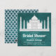 Amaze your guests with this traditional bridal shower invitation featuring a beautiful Taj Mahal illustration against a teal background. Simply add your event details on this easy-to-use template to make it a one-of-a-kind invitation. Flip the card over to reveal an elegant Moroccan quatrefoil pattern on the back of the card.