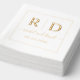 This gold foil wedding paper napkin features a sophisticated design with the couple's initials elegantly displayed. The personalised touch continues with the inclusion of the couple's names in script typography and the memorable date of their special day. There is also a border around the text.