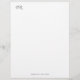 Personal stationery featuring your custom initials in a distinctive font at the header creates a striking and personalised touch. The initials serve as a bold statement piece, drawing attention to your unique style. Along the bottom of the sheet, your address, phone number, and email are neatly aligned in a clean, understated font, ensuring easy readability without overshadowing the elegant header. This layout balances sophistication and practicality, perfect for both personal and professional correspondence.