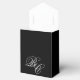 These beautiful wedding favour boxes are perfect for your wedding favours. It features your initials in elegant white script and on the backside is your names and wedding date on a black box.