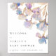 This elegant welcome poster is perfect for spring and summer baby showers. This design features watercolor irises in shades of lilac and periwinkle blue. Subtle touches of gold add a glistening, magical element.
