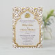 Celebrate your wedding in style with this elegant Wedding invitation featuring a lattice leaf background and an Islamic Arch with the words "Bismillah Ilrahman Ilrahim".