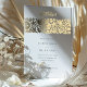 This beautifully crafted wedding invitation features a refined beige and ivory colour palette with intricate floral motifs and elegant Arabic calligraphy. The front of the card is adorned with a delicate floral border in soft beige, providing a classic and sophisticated frame for the couple's names and wedding details. The back of the invitation continues the floral theme, showcasing a detailed pattern that adds a touch of timeless elegance. Ideal for couples seeking a wedding invitation that combines traditional artistry with modern design, this card is perfect for a formal wedding celebration.