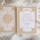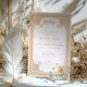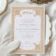 This sophisticated wedding invitation is a true testament to elegance with its ornate Islamic-inspired artwork. Featuring a rich palette of cream, beige, and sepia tones, it exudes a sense of timeless grace and cultural beauty. The front and back of the invitation showcase a detailed, symmetrical mandala pattern, intricately designed with elements that suggest a blend of classic Islamic art and modern finesse. The decorative border frames the content gracefully, with each curl and swirl meticulously crafted to complement the central motif. The use of subtle colour variations from sand to tan, oatmeal to taupe, and hints of antique gold, create a luxurious and warm aesthetic perfect for a traditional yet stylish matrimonial event. This invitation is not just a herald of a special day, but also a keepsake that will be treasured for years to come.