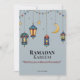 "Celebrate the holy month of Ramadan with this elegant Islamic card. Featuring geometric patterns in the background, a crescent moon, lanterns, Ramadan decorations and an elegant display font, this card is perfect for sending warm greetings to family and friends while personalising and identifying your name. You can customise the text with your message and name to make it unique!"