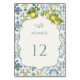 Elegant Italian Blue Tile Lemon Wedding Table Number