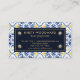 Elegant Watercolor Blue and Yellow Italian Mediterranean pattern design with gold frame and diamonds