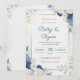 A timeless ivory backdrop adorned with soft blue florals and elegant gold accents, this wedding invitation features a beautiful floral ampersand design. The delicate blue blooms are complemented by subtle gold details, creating a sophisticated and romantic atmosphere. Perfect for couples seeking a blend of classic charm and modern elegance for their special day.