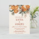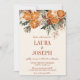 This elegant ivory citrus floral wedding invitation features fall & winter floral greenery. Oranges shown in burnt orange with cinnamon sticks and autumn colour flowers. All text, including names, can be changed. Dark Burnt Orange background in back is optional.