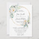 This modern chic wedding invitation features a gold circle frame adorned by beautiful watercolor ivory peonies, white anemones and eucalyptus greenery. Designed to match our Adore wedding collection. Personalise it with your details easily and quickly, simply press the customise it button to further re-arrange and format the style and placement of the text.