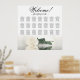 Enhance the aesthetic appeal of your wedding reception with this exquisite 21 table seating chart. The chart accommodates up to 210 guests and follows a traditional layout of 10 seats per table. The design exudes a romantic and stunning aura, showcasing a solitary ivory, white, or cream coloured rose resting sideways and mirrored in a water body. The elegant calligraphic title reads "Welcome! Please find your" with ample space at the bottom for the couple's names and wedding date. This seating chart provides a delightful welcome to your guests while facilitating their seating arrangements.