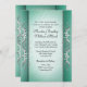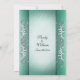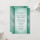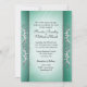 This gorgeous invitation has two columns on either side creating a border with white frill accents. It is a shade of what I can best describe as jade green . Text on both sides. Names and date can be added to the first side.