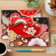 I love Japanese kimono. They inspired me to create this autumn design featuring floral elements and Japanese patterns.