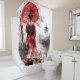Transform your bathroom into a tranquil retreat with this stunning watercolor-style design. A graceful geisha in a traditional red kimono walks beneath blooming cherry blossom trees, holding a vibrant red parasol. Petals scatter along the path, while a misty pagoda rises in the background, evoking the quiet beauty of springtime in Japan. Rich red and black tones lend drama and elegance, making this shower curtain a striking centerpiece for any space.
