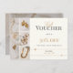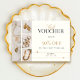 A stylish and customisable gift voucher template designed with elegant gold jewellery accents. Perfect for jewellery stores, boutiques, and fashion brands offering special discounts or promotions. This modern and professional design is ideal for attracting customers and enhancing brand image.