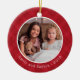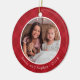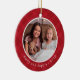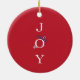 This timeless design features a picture in the centre and a red plaid texture in the background. The back of the ornament includes the word Joy in big white letters on a Red background. The letter "O" has a floral detail that adds a delicate and unique touch. This ornament will make a great keepsake for years to come.