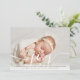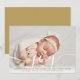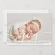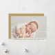 An elegant photo holiday birth announcement card featuring your special favourite photo, baby's name and birth stats, and your holiday message set in classic modern typography over a chic script message of joy. Designed by Thisisnotme©