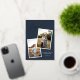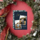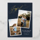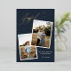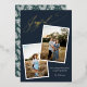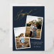 Elegant Gold Foil Pressed Joyful Calligraphy Dark Blue Christmas Photo Pregnancy Holiday Announcement Card with a festive Holiday pattern on the back and your photos and text of choice.