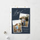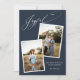 Elegant Joyful Calligraphy Dark Blue Christmas Photo Pregnancy Holiday Announcement Card with a festive star pattern on the back and your photos and text of choice.