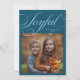 Elegant holiday card featuring a typography text that says "joyful" in a calligraphy font above your square photo. Add a second photo on the back along with your message. Background is teal.