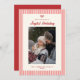 For the family this Christmas holiday season. This red and off white 'Joyful Holiday' greeting card features an elegant and stylish striped background. This greeting card can be personalised with the inclusion of your own choice of photo and choice of text at the bottom of the design. This greeting card is colourful, bright, stylish and elegant. It is the ideal greeting card for the family this Christmas.