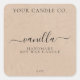 Elegant Kraft Minimalist Script Candle Label. Create your own personalised product label for cosmetics and candle jars featuring simple modern design, elegant script calligraphy and kraft style paper image background.