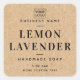 Elegant product label with your custom logo and the name or scent of the product in an elegant serif font on a printed, brown Kraft paper look background. Customise fonts and font colours, move and resize logo and text with the design tool.