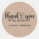 An elegant Kraft paper and black calligraphy thank you sticker with pretty script typography. Has a kraft paper texture background. Great for thanking customers or makes a pretty envelope seal for your wedding thank you cards. Personalise it with your name. Designed for you by Blackberry Boulevard.