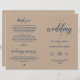 This is the foldable wedding ceremony program card, in Navy Blue elegance classy script, rustic brown Kraft theme.