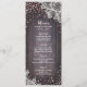 Elegant white vintage lace and sparkle blush pink glitter on dark rustic barn wood background. great wedding menus for rustic wedding, barn wedding and country wedding.