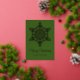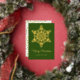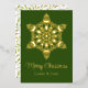 A beautiful, intricate foil snowflake and signature below are all there is to this elegant Christmas card. Change "Merry Christmas" to whatever greeting you would like, and change the names to your own. The back is a complementary green botanical pattern.