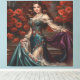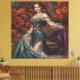 Elegant Lady in Floral Dress Amidst Red Poppies Canvas Print