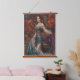 Elegant Lady in Floral Dress Amidst Red Poppies Hanging Tapestry