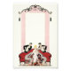 Elegant Lady in Paris print. Art deco illustration from 1924. French illustrator Georges Barbier completed dozens of beautiful illustrations depicting the roaring twenties in France. Elegant Lady in Paris features a young blonde woman sitting on a couch as two suitors in tuxedos flirt with her. The woman wears a pink gown and holds a pink feather fan while above them sit pink curtains. A great gift for fans of art deco fashion, vintage art, and Georges Barbier.