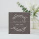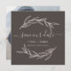 Elegant laurel leaf wreath in soft beige, script calligraphy, classic typography and your favourite photo on the back side overlaying dusty brown.