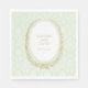 This green napkin is perfect for birthday party or a bridal/baby shower. The design features an antique laurel wreath engraving design with a stack of three macarons. The design is on a light green damask background.