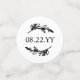 Romantic wedding table confetti personalised with photos, your monogram inside a laurel wreath, the word love, and your wedding date with black fonts against a white background.