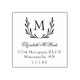 Elegant return address stamp featuring a laurel wreath around a monogram. Customise this product by adding your name, initial, and address. Beautiful script font is used for your name.