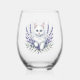Elegant Lavender and Cat Birthday Stemless Wine Glass
