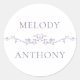 Elegant Lavender Floral Border Monograms Classic Round Sticker