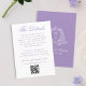 Keep your guests informed with this elegant lavender wedding details card. “The Details” is displayed at the top in graceful lavender calligraphy on a classic white background. Personalise this card with essential wedding information such as accommodations, transportation, reception details, and more. Add your custom wedding website and instructions beneath, with a convenient QR code included so guests can easily scan and access your site. The back showcases your monogram initials framed by a white botanical floral crest on a soft lavender-purple background, with space below for your names and wedding date. A beautiful and functional addition to your lavender-inspired wedding stationery suite.