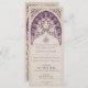 This exquisite wedding invitation marries tradition with modern design, featuring an intricate lace pattern reminiscent of Islamic artistry. Printed to create a stunning embossed appearance, the invitation showcases a beautiful palette of purple hues ranging from soft lilac to deep aubergine, accented by contrasting cream details. The delicate floral and geometric motifs are inspired by classic Islamic architecture, lending an air of sophistication and cultural elegance. The front displays an elaborate cut-out effect, while the back offers ample space for event details. This printed invitation is perfect for couples seeking to honour their heritage while celebrating their future.