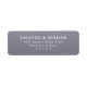 This return address label features a clean, centered layout with ample spacing on a solid lavender background. The design uses elegant serif typography in crisp white, creating a sophisticated and formal look ideal for invitations or personalized correspondence. Its minimalist style emphasizes clarity and simplicity, making it versatile for various occasions while maintaining an air of elegance.
