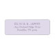 This elegant label features a simple, modern design with centered text on a soft lavender background. The layout is minimalistic, utilizing clean lines and ample negative space to create a sophisticated look. The typography employs a medium-weight serif font in uppercase, ensuring clarity and elegance. Perfect for personalizing gifts or stationery, this label exudes a calm and refined mood, ideal for formal occasions or everyday use.
